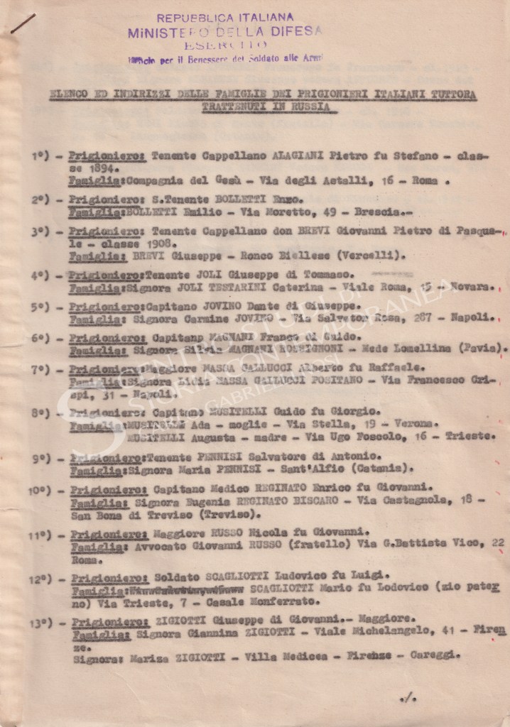 Alcuni dei documenti sono emanati dal Ministero della Difesa, altri dall’Unione Nazionale Italiana Reduci di Russia (U.N.I.R.R.).