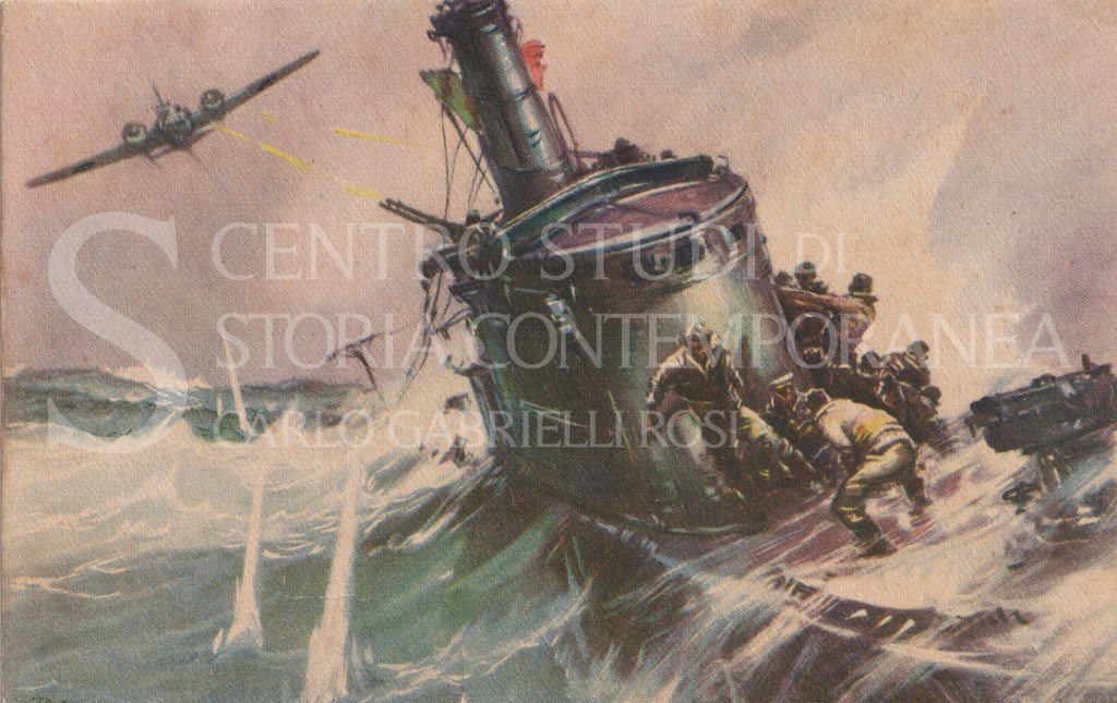del noto artista della propaganda fascista Vittorio Pisani rappresentanti scene di guerra in mare descritte
