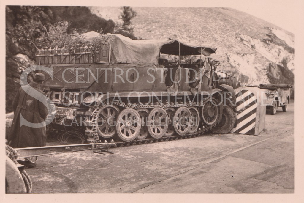 mostrano movimenti ed incidenti di mezzi militari nella campagna versiliese.