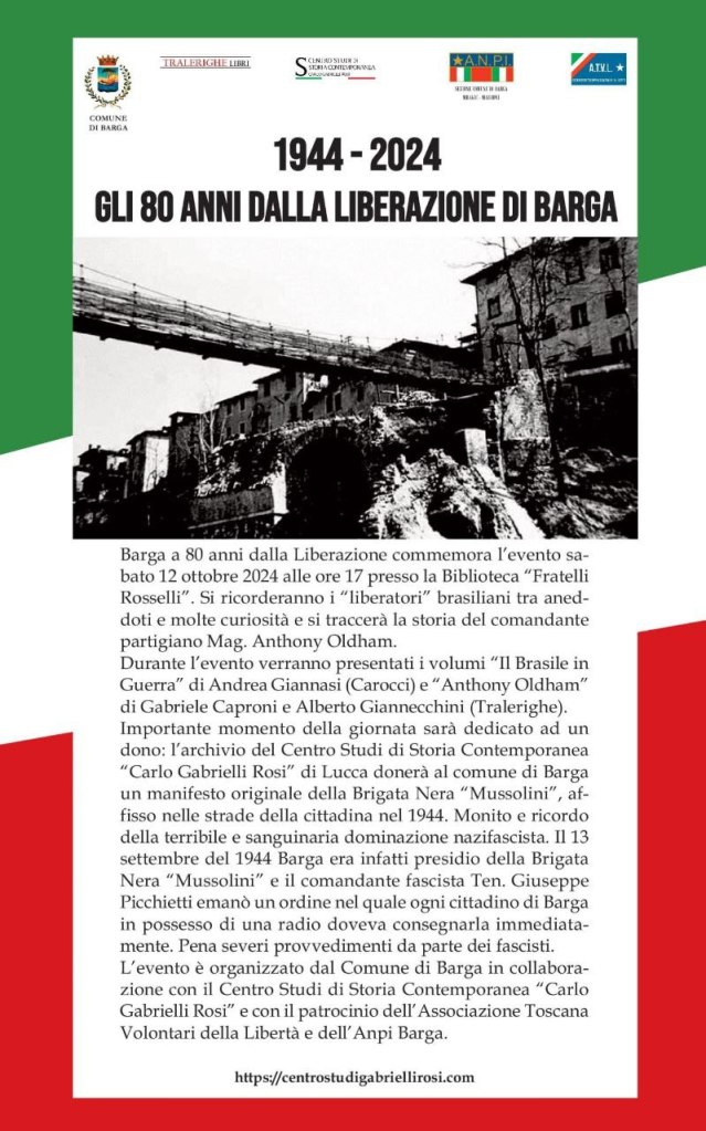 Barga a 80 anni dalla Liberazione commemora l’evento si è svolto sabato 12 ottobre 2024 alle ore 17 presso la Biblioteca “Fratelli Rosselli”.