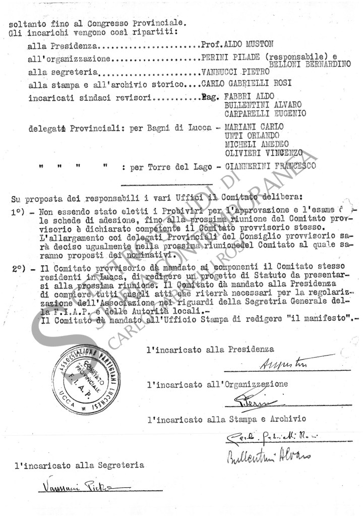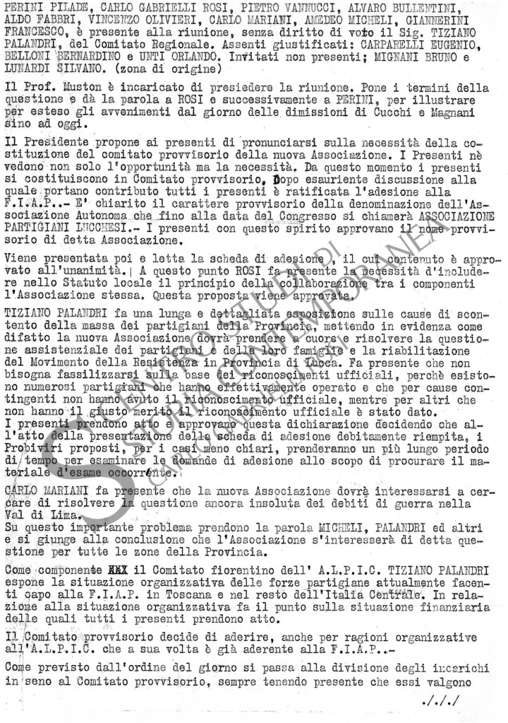 Ci sono verbali di assegnazione di cariche e atti fondativi dell’associazione autonoma partigiana associata F.I.A.P.