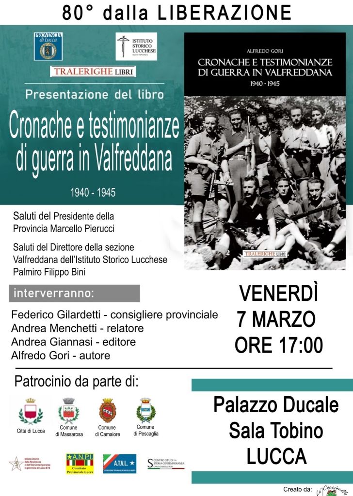 L’evento è patrocinato dai comuni di Lucca, Massarosa, Camaiore e Pescaglia e dall’Associazione Toscana Volontari della Libertà, A.N.P.I. Comitato Provinciale di Lucca, Centro Studi di Storia Contemporanea “Carlo Gabrielli Rosi” e dall’ Istituto Storico della Resistenza e dell’Età Contemporanea in provincia di Lucca ETS.