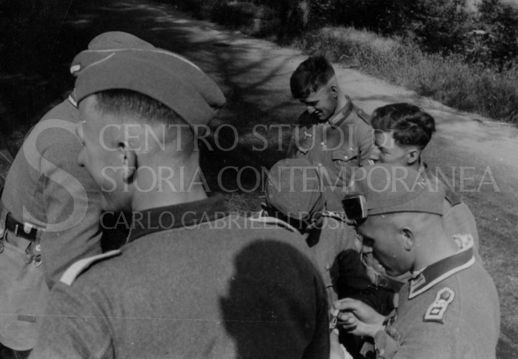 Descrizione: Il fondo, composto da 695 fotografie, rappresenta il contenuto di cinque album privati prodotti da soldati del Terzo Reich. Si tratta di raccolte private di singoli soldati che hanno fotografato momenti di svago e vita quotidiana, inframezzate da foto di operazioni e mezzi. Sono presenti foto di gruppo, di trasporti, in studio e di città occupate, quale Parigi.