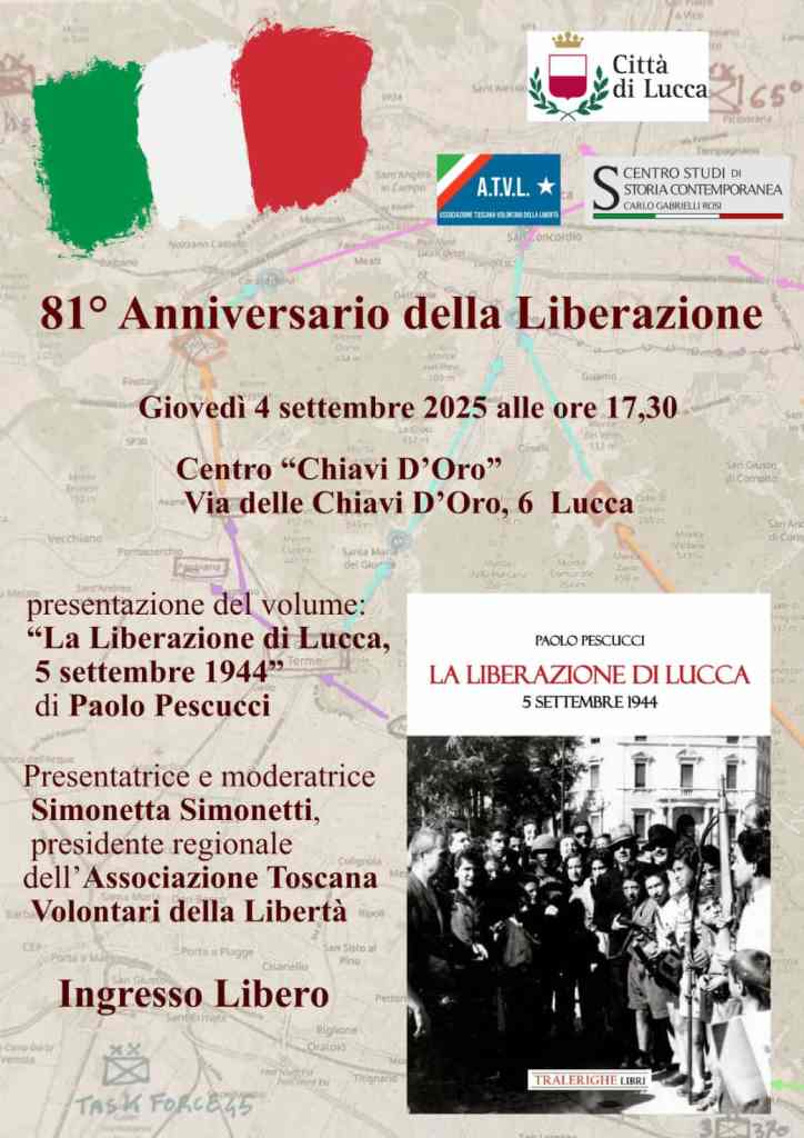 In occasione dell’Anniversario della Liberazione di Lucca ci sarà la presentazione della seconda edizione del volumetto “La Liberazione di Lucca, 5 settembre 1944” di Paolo Pescucci.