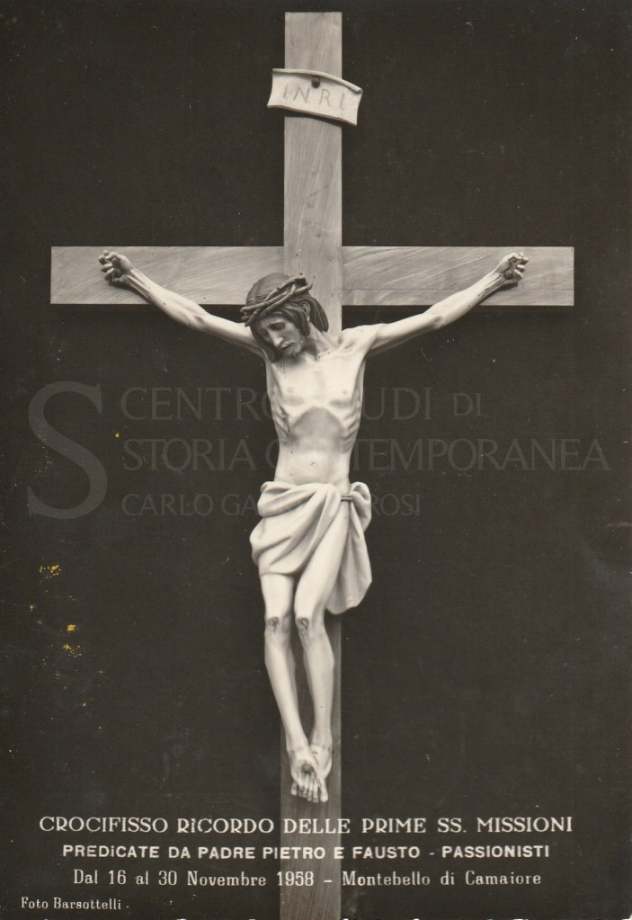 Le foto che seguono mostrano il Crocifisso ricordo delle SS. (Santissime) Missioni predicate da Padre Pietro e Fausto Passionisti dal 16 al 30 novembre 1958 Montebello di Camaiore.